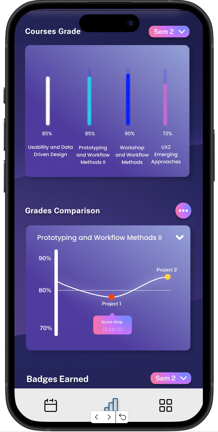 Progress Visualization: Instead of only showing static grades, I designed clear progress bars and milestones that made students see exactly how far they had come and how close they were to their academic targets.